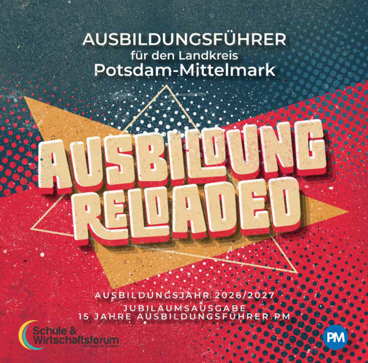 Das Netzwerk Schule & Wirtschaftsforum PM in der Technologie- und Gründerzentrum Potsdam-Mittelmark GmbH erstellt im Auftrag der Wirtschaftsförderung des Landkreises Potsdam-Mittelmark auch für das nächste Schuljahr eine Übersicht über die Ausbildungsbetriebe im Landkreis – den Ausbildungsführer PM. Unternehmen und Institutionen haben die Möglichkeit ihre freien Ausbildungs- und Praktikumsplätze sowie Ferienjobmöglichkeiten zu präsentieren. Die Teilnahme am Ausbildungsführer PM ist kostenfrei für Sie. Die Maßnahme wird gefördert aus Mitteln des Landkreises Potsdam-Mittelmark, Sponsoring-Mitteln und freiwilligen Unternehmensbeiträgen. Diese Übersicht wird den weiterführenden Schulen zur Verfügung gestellt, so erhalten die Schülerinnen und Schüler einen Überblick über die Ausbildungsmöglichkeiten in den regional ansässigen Unternehmen. Die Druckauflage wird erneut bei 4.000 Exemplaren liegen. Zudem gibt es eine Online-Version, die frei zugänglich ist. Den aktuellen Ausbildungsführer finden Sie hier.