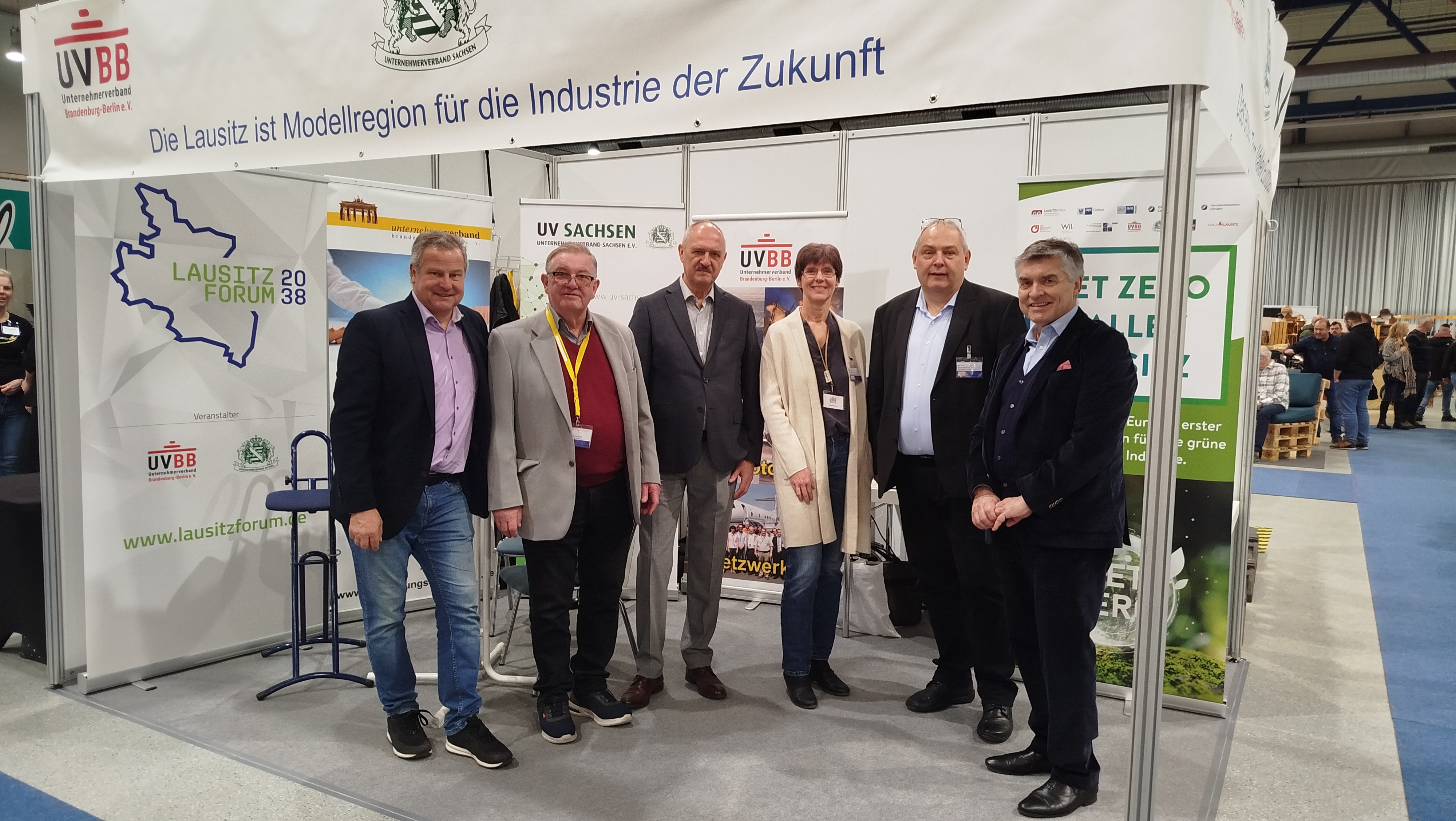 Besondere Tradition haben unsere Messeauftritte zu den Handwerkermessen in Cottbus erlangt. Zur Handwerker 2026 am 24. und 25. Januar 2026 waren wir traditionell wieder mit einem Stand vertreten. Damit war der Unternehmerverband einer von insgesamt 157 Aussteller, darunter 81 Handwerksbetriebe aus 34 verschiedenen Gewerken und Branchen. Das Besondere, mit unserem Stand präsentierten wir in diesem Jahr die Kooperation mit dem UV Sachsen und der Wirtschaftsinitiative Lausitz (WIL). Vertreter am Stand waren Dr. Burkhardt Greiff, Präsident des UVBB, Roland Peine, Vizepräsident, Heike Kneiss, Ivo Fuchs, Horst Böschow und Andreas Elsner. Am ersten Tag konnten wir auch Wieclaw Ocytko, Mitglied des Präsidiums unseres polnischen Partnerverbandes OPZL, begrüßen.